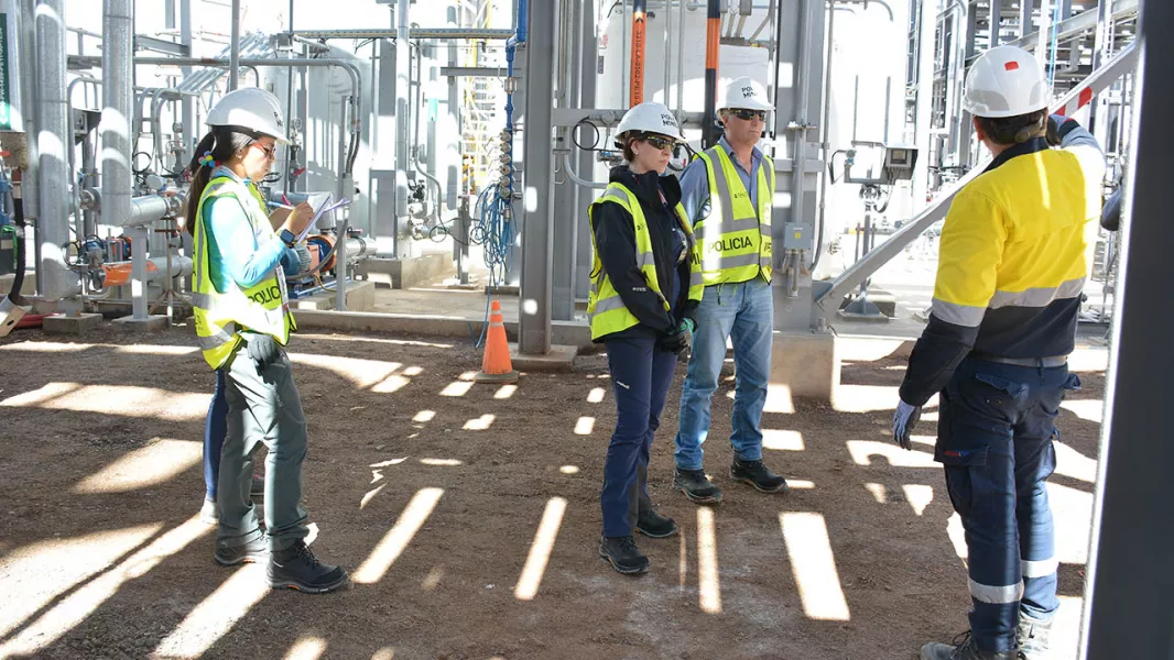 El recorrido fue encabezado por el subsecretario de Minería, Federico Carrizo, junto a la directora General de Minería, Paula Marinaro, y profesionales técnicos del organismo. La inspección comenzó en el área de operaciones, donde se encuentra la planta Rincón 3000, aprobada por Resolución N° 009/23, realizándose una revisión específica de las distintas unidades que integran el proyecto.