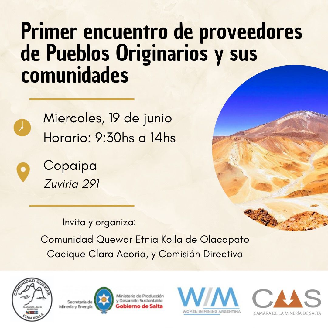 Este miércoles 19 de junio de 9.30 a 14 horas se realizará el 1° encuentro de proveedores de la Puna Salteña a exponer sus productos y servicios. Estará organizado por la comunidad Kolla Quewar de Olacapato.