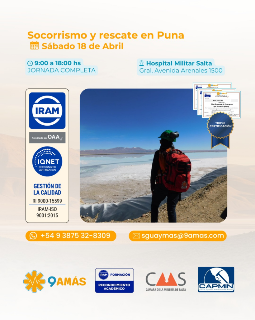 Ante el auge de la actividad minera en el NOA y las condiciones geográficas extremas que presenta la Puna, la seguridad operativa y la capacidad de respuesta ante emergencias se han consolidado como prioridades innegociables. En este contexto, Salta será sede de una serie de capacitaciones de vanguardia destinadas a profesionalizar a los equipos de socorrismo, rescate y salud ocupacional.