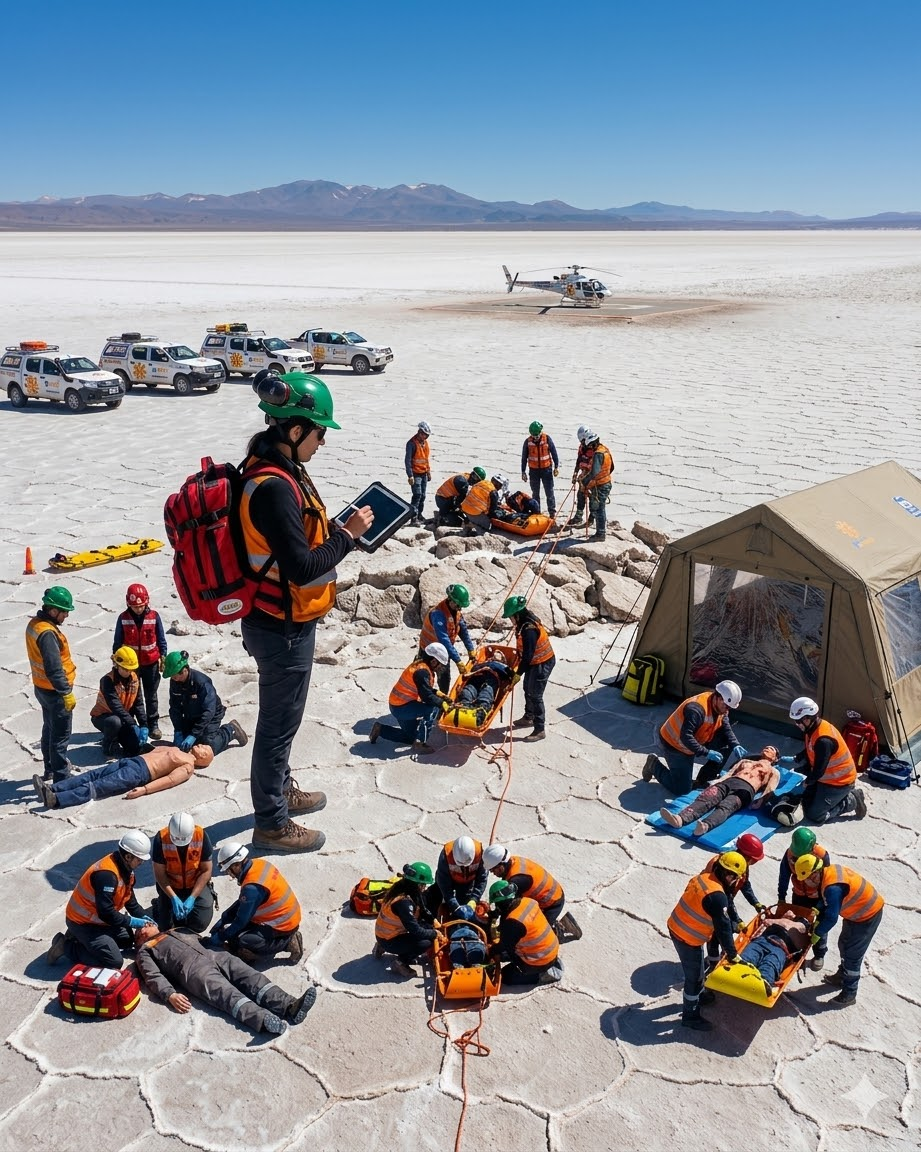 - Enfoque: Esta capacitación de «Triple Certificación» aborda el desafío técnico de operar en la Puna, donde la altura (hipoxia), las temperaturas extremas y el aislamiento son factores críticos. Incluye protocolos para accidentes viales, hipotermia y traslados masivos en entornos hostiles.
